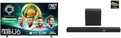 Hisense 75U65QF Mini-LED 4K UHD Smart Fire TV AX3100Q 3.1Ch Sound Bar with Wireless Subwoofer